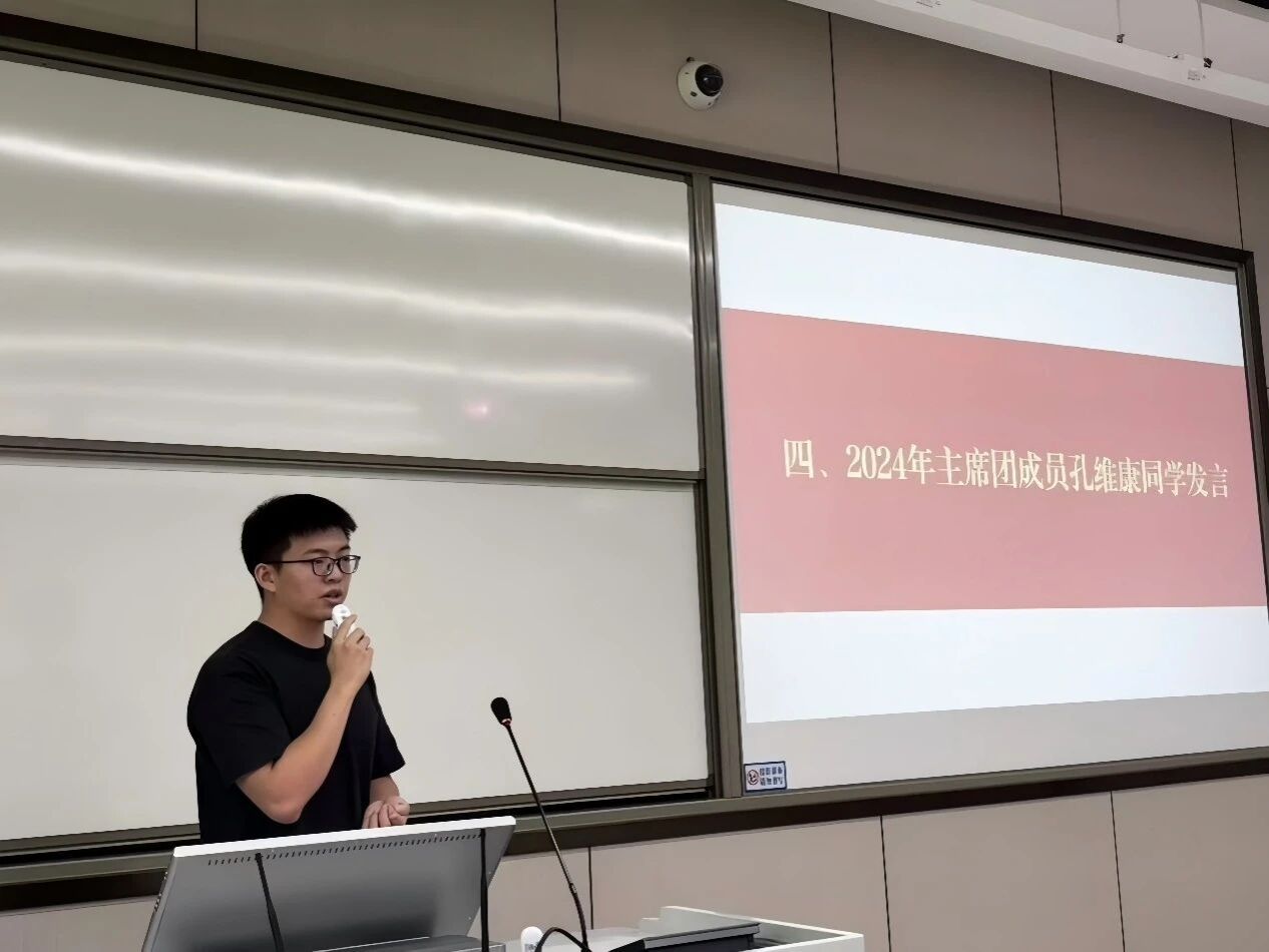 随后,上一届研究生会主席团成员孔维康为大家分享学生工作心得。他表示,学生工作积累的办文、办事、办会等经验与技能具备可迁移性,且研会平台氛围宽容,有利于助力个人成长。同时建议同学们主动发现、正视并改进工作不足,善用院校资源找准工作节奏,保持良好心态,在工作中向内探索自我价值。